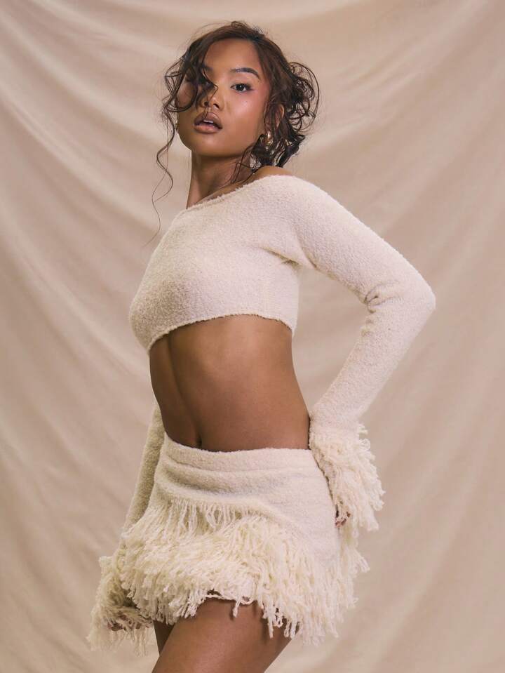 finished with elegant fringe at the hem. Wear it with